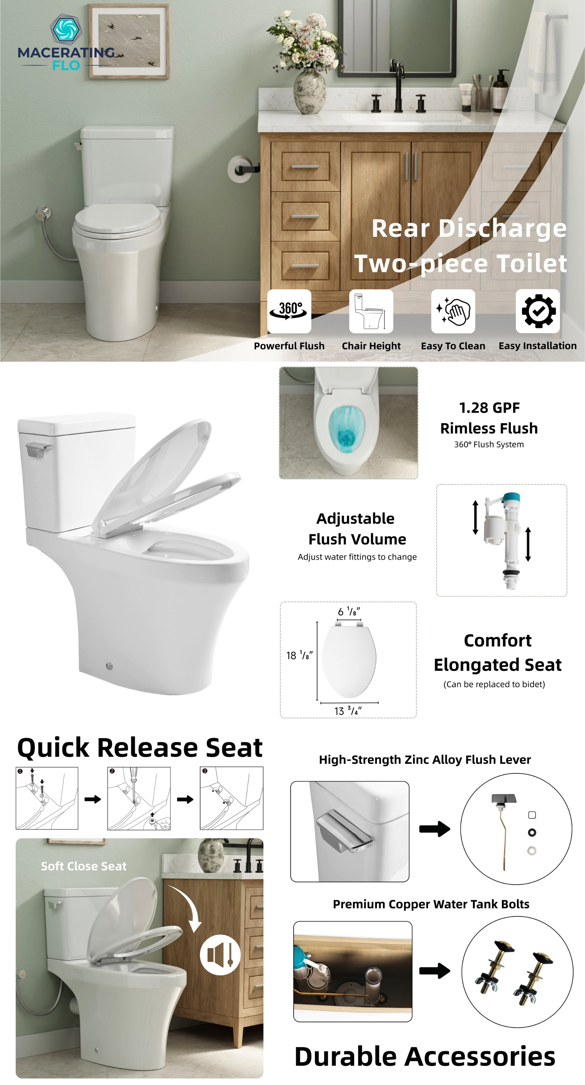 MaceratingFlo Rear Discharge Two-Piece Toilet